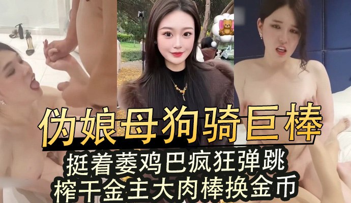 伪娘母狗骑巨棒,挺着萎鸡巴疯狂弹跳,榨干金主大肉棒换金币